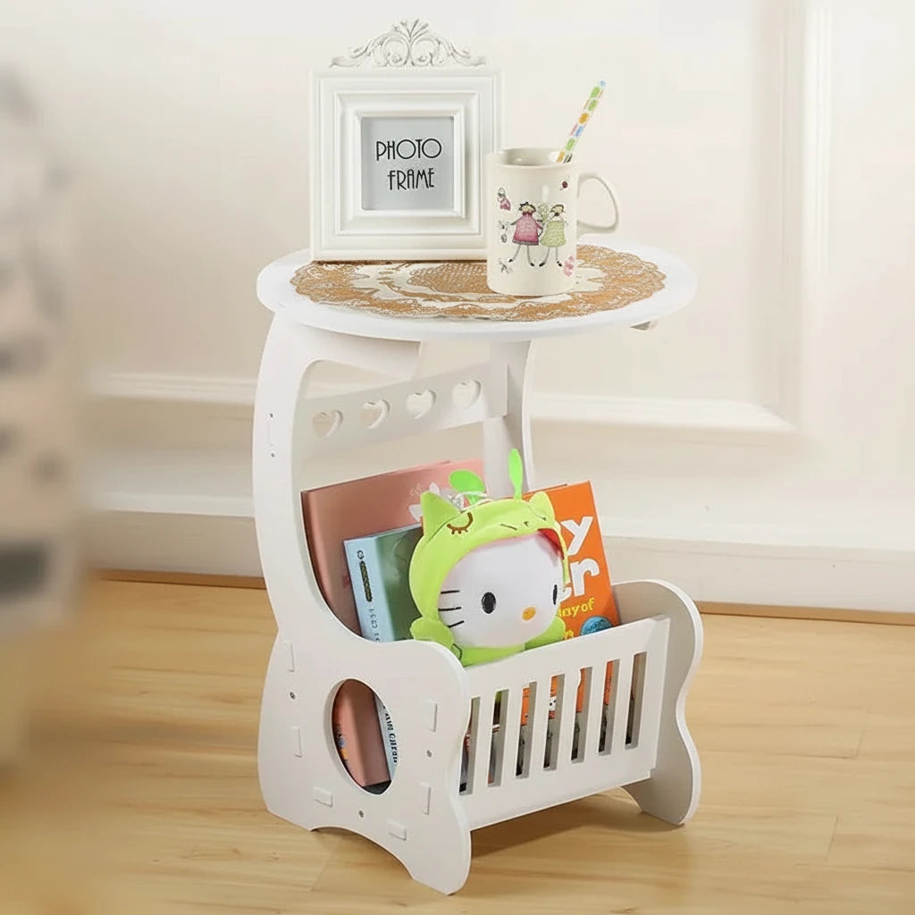 Distinguished by its unique round shape, it not only functions as a useful piece but also as a focal point in your room. Enjoy the added benefit of storage space , allowing you to keep your essentials organized and within easy reach.