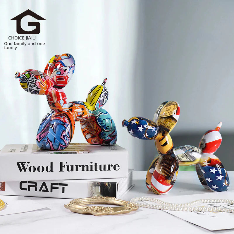 Introducing our stunning colorful balloon dog figurine with European-style water transfer graffiti print – a perfect blend of art and functionality for your home décor. Imagine this eye-catching piece adorning your living room, hallway, or TV stand, transforming your space into a modern art gallery.