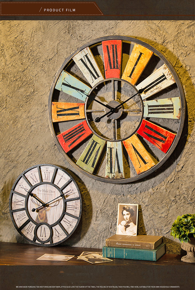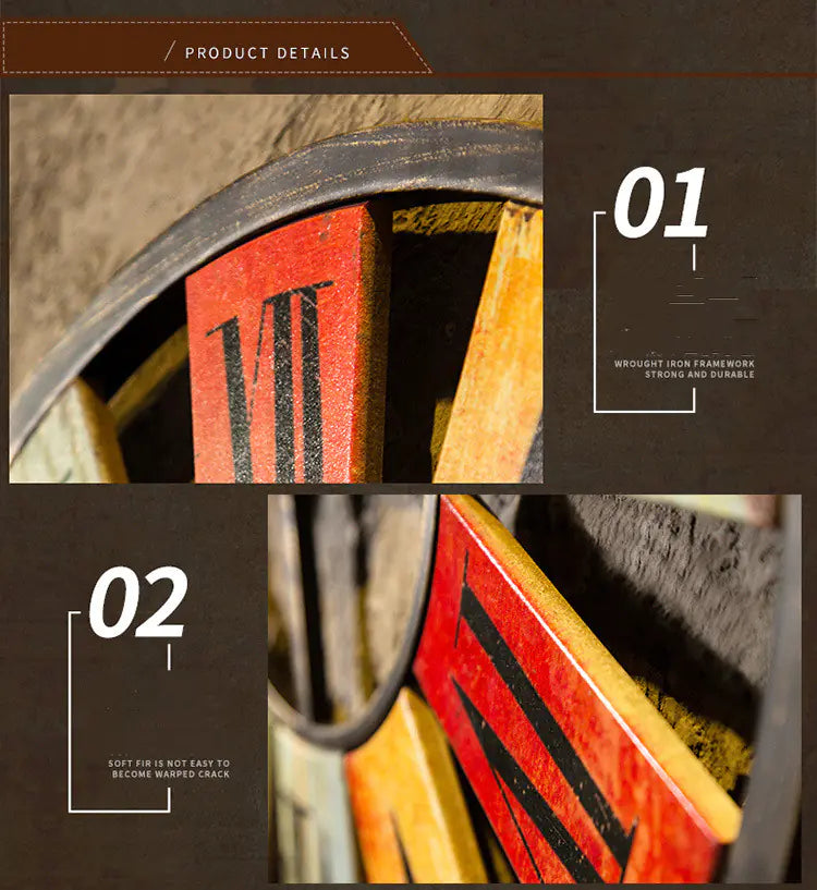 Crafted from high-quality iron , this clock exudes a retro charm that perfectly complements loft-style interiors. Its vibrant colors and intricate design make it a perfect addition to your living room, dining area, or any public space where you want to make a statement.