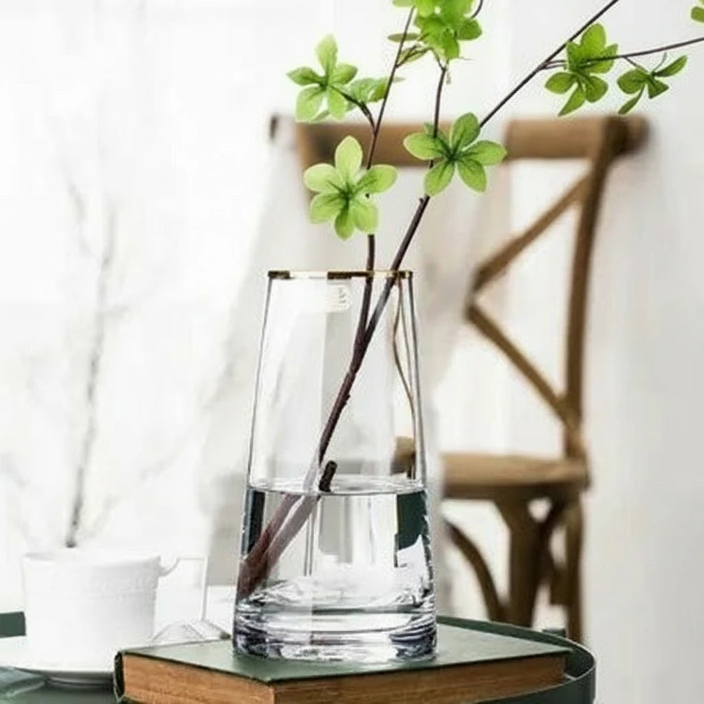 Transforme su espacio en un oasis sereno con nuestros elegantes jarrones de vidrio. Su diseño minimalista no sólo complementa diversos estilos de decoración, sino que también sirve como un impresionante centro de mesa para sus arreglos florales.